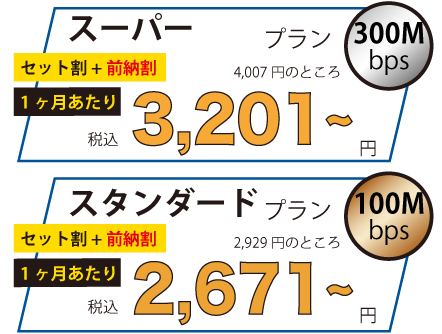• インターネットのみ:スーパープラン(300Mbps)以上の方