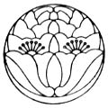 家の紋に由来し、大正4年(1915)に宗歌「月かげ」の月を配した現在の紋が定められました。